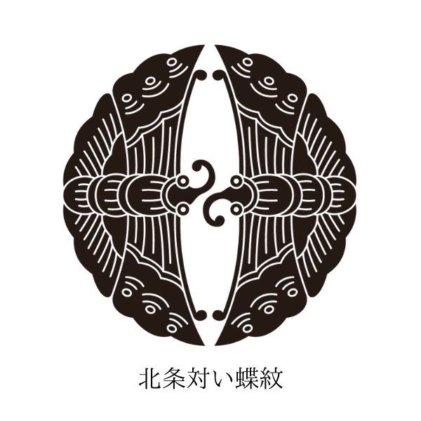 北条氏康の家紋:北条鱗紋、北条対い蝶紋、三つ鱗紋、隅折敷の内に二文字紋